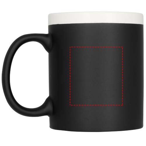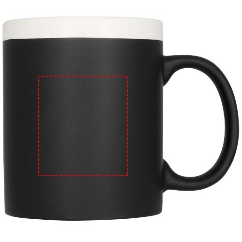 Diese Tasse ist durch Schreiben auf der Tafel mit Kreide personalisierbar. Die Kreide ist im Lieferumfang enthalten. Spülmaschinenfest EN12875-1 konform (bei bis zu 125 Waschvorgängen) für alle Werbeanbringungsmethoden. Das Fassungsvermögen beträgt 330ml. Präsentiert in einer weißen Kartonschachtel.