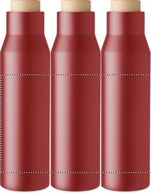 Doppelwandige Isolierflasche aus Edelstahl. Verschluss aus Bambus- Imitat. Füllmenge: 500 ml. Auslaufsicher.