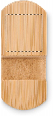Kleiner Smartphone-Halter aus Bambus. Bambus ist ein natürliches Produkt, es kann daher zu leichten Abweichungen in Farbe, Dekor und Maßen kommen.