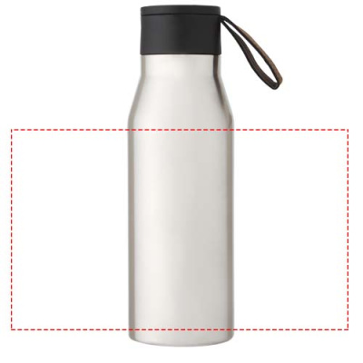 Kupfer vakuumisolierte Edelstahlflasche mit klassischem und elegantem Design. Verfügt über ein PU Kunststoff-Lederimitatband und ein Detail auf dem Deckel. Ideal geeignet für eine Lasergravur, bei der das Logo in Silber hervorgehoben wird, was einen schönen visuellen Effekt erzeugt. Dank der doppelwandigen Kupfer-Vakuum Isolierung aus 18/8 Edelstahl bleiben die Getränke mehrere Stunden lang heiß oder kalt. Geprüft und zugelassen nach deutschem Lebensmittelsicherheitsgesetz (LFGB) und auf Phthalatgehalt gemäß REACH Verordnung getestet. Das Fassungsvermögen beträgt 500 ml. Verpackt in einer Geschenkbox aus Recyclingkarton.