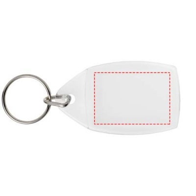 Transparenter Schlüsselanhänger mit metallenem Schlüsselring. Der Metallring bietet ein flaches Profil, das sich ideal für Mailings eignet. Abmessungen der Druckeinlage: 3,5 cm x 2,4 cm.