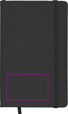 DIN A5 notebook in velvety PU cover with 160 neutral pages. We print your logo on the cover.