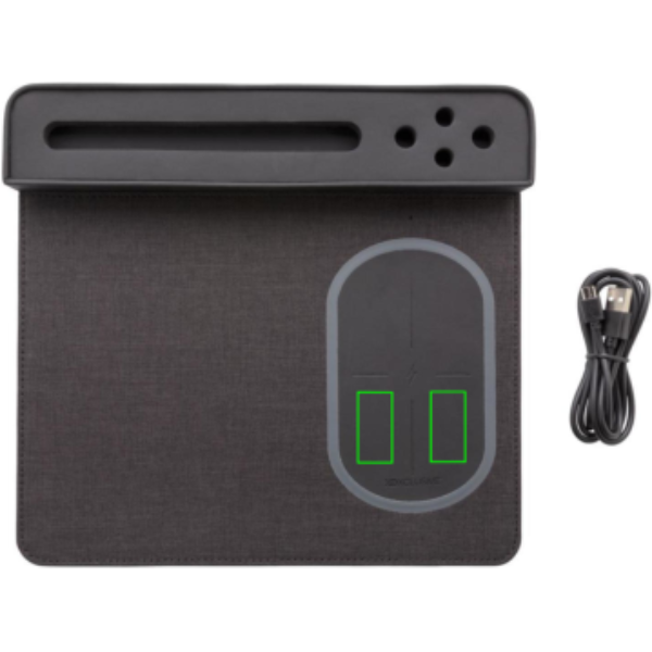 Quickly power up your smartphone by cable or any mobile device that supports wireless charging by simply setting it down on the right side of the mousepad. Sleek, slim rectangular mousepad design with anti-slip back comes with phone stand and 4 pen stands. Including 1.5m cable. Input: 5V/1A; Output 5V/1A; Wireless output: 5V/1A 5W.