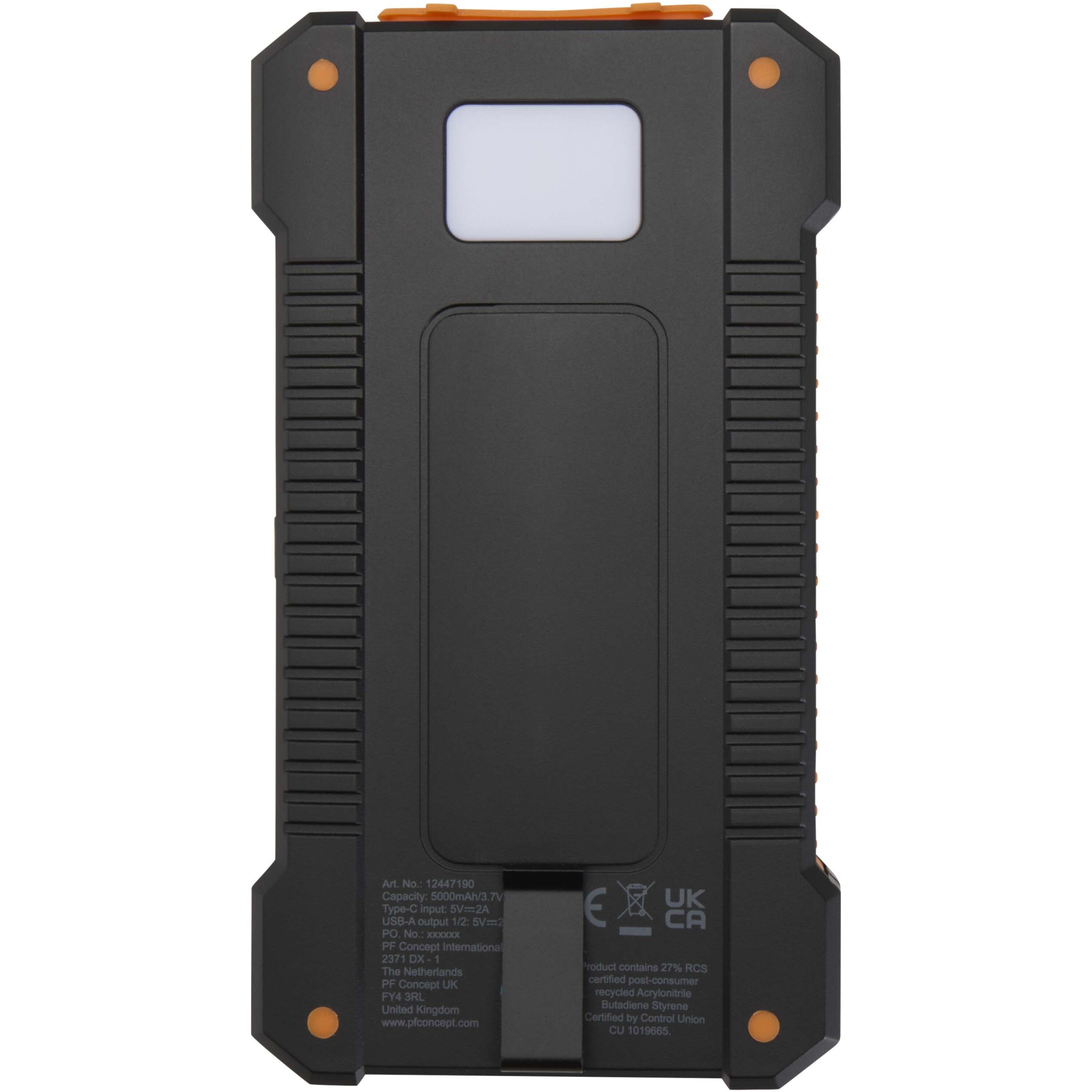 Logo trade promotional product photo of: Altair 5000 mAh 10W recycled plastic rugged solar power bank with built-in torch