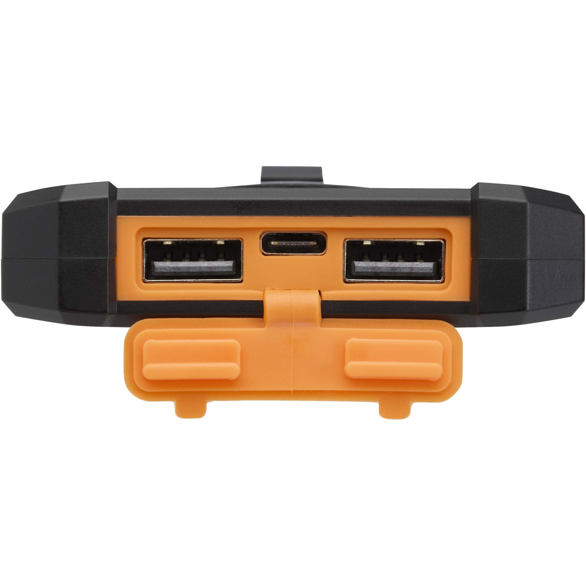 The Altair 5000 mAh solar power bank, made from recycled plastic, is built for durability and convenience. It offers two USB-A output ports and a Type-C input/output port for flexible charging options. Designed with a rugged exterior, it features a removable clip for easy attachment, a built-in torch, and connectors securely stored behind a silicone cap. With solar charging capability and an LED indicator to show charging status, this power bank is the ideal companion for outdoor adventures.