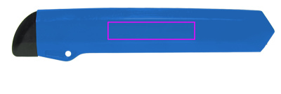 Cardboard knife made of plastic with snap-off blade (seven blade parts). We print your logo on the closed part of the plastic case.