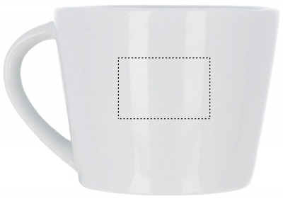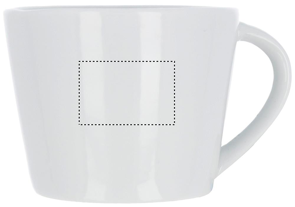 Porcelain conic cappuccino cup with saucer. Cup capacity: 160 ml. Bulk packaging. Pad printing is not dishwasher safe. Ceramic transfer is dishwasher safe.