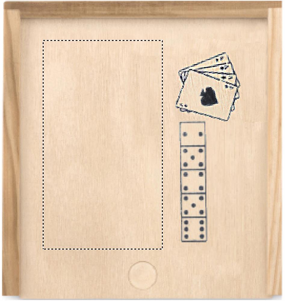 Playing set with 54 cards and 5 dice. Presented in wooden box.