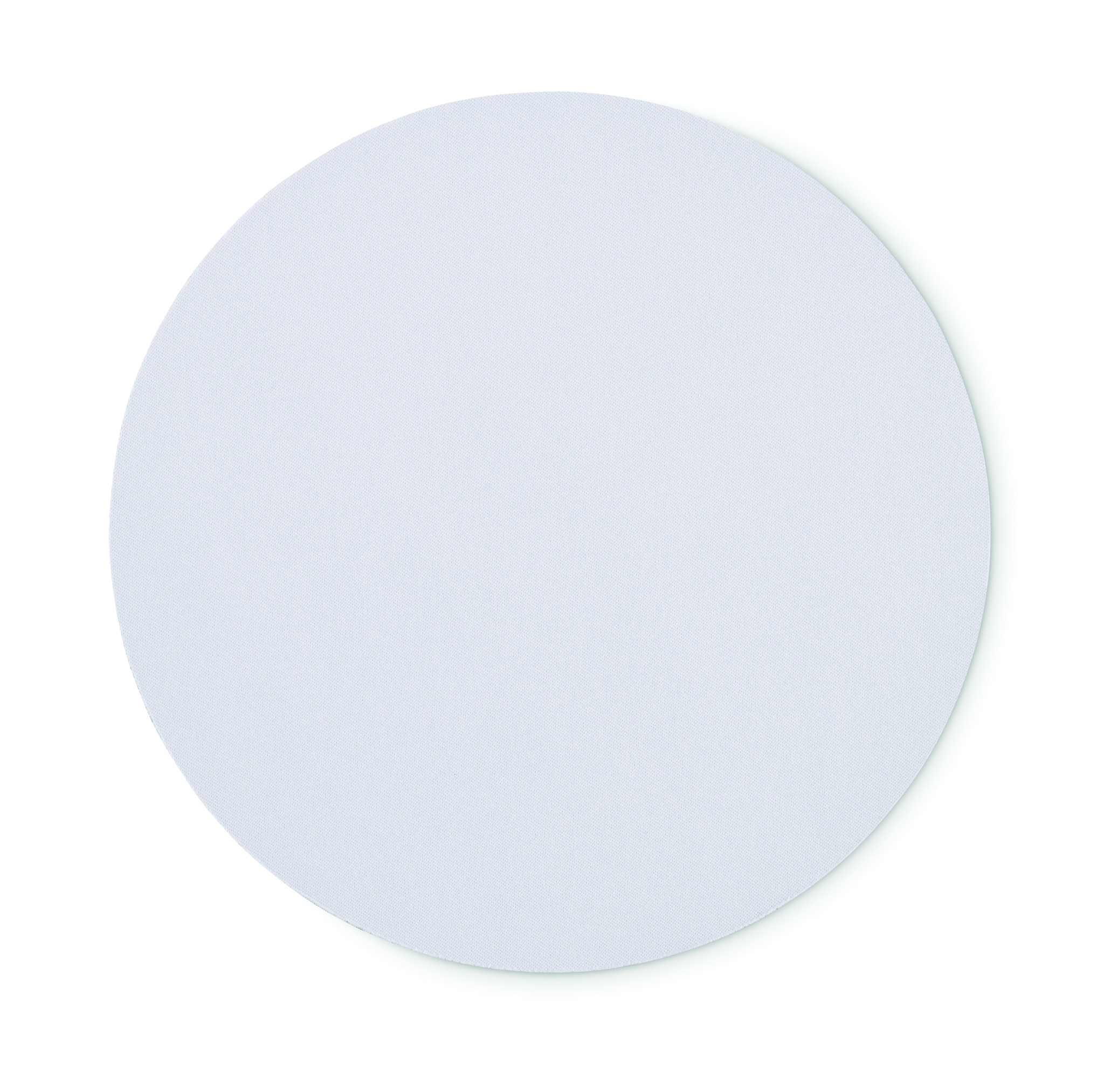 Computer mouse mat for sublimation with polyester surface and rubber on the base to prevent slipping. Diameter 21cm.
