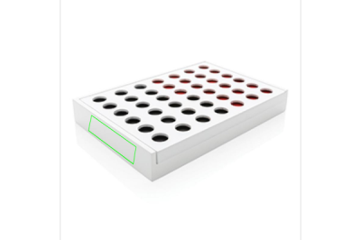 Enjoy a fun game night together with your friends! This strategy game is both fun and a good mental exercise. The aim is to get four pieces in a row. The game board is made of MDF and the 42 game pieces of schima superba wood and measures 24x16.5x3.5 cm. Presented in a full colour gift box.