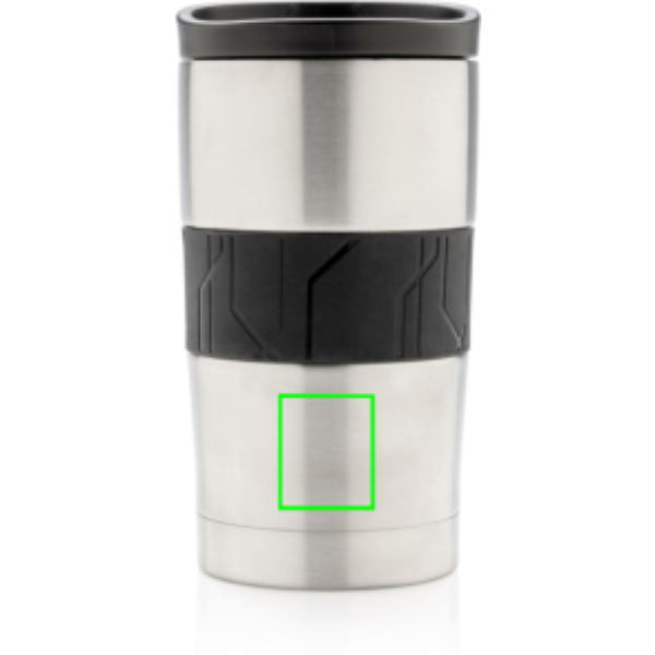 Leakproof vacuum mug made out of 304 stainless steel with silicone grip and slider lid. Dishwasher safe and suitable for most coffee machines. Convenient one-hand drinking. Content: 300ml.