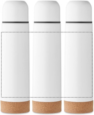 Double wall vacuum insulated flask in recycled stainless steel (90% recycled stainless and 10% stainless steel) with cork detail base. Leak- free. Capacity: 500 ml.