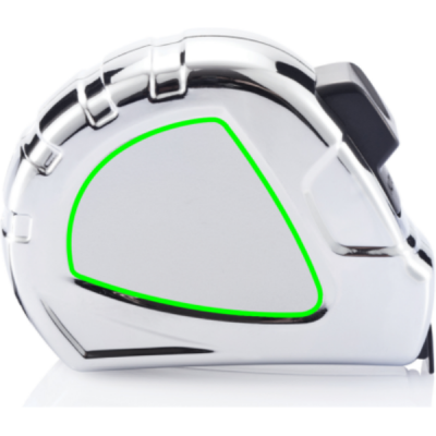 ABS chrome plated case with matt yellow metal tape, ECII and stamped. Black stop button and strap plus stainless steel clip.