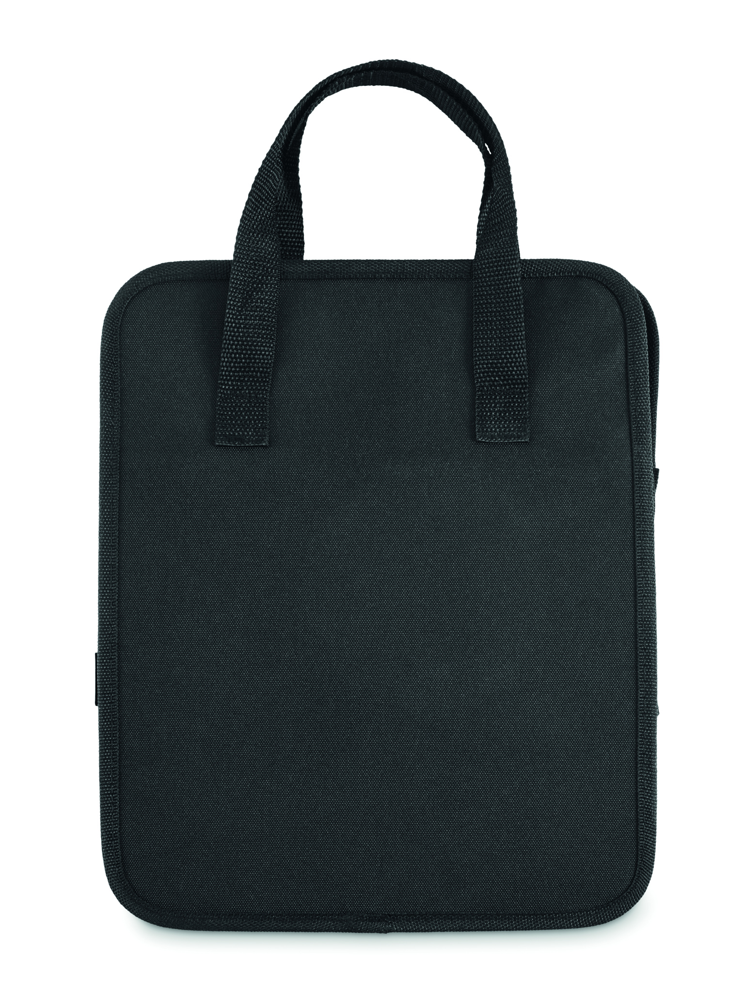 Foldable car organizer in 600D RPET polyester with 3 compartments of which one cooler compartment.