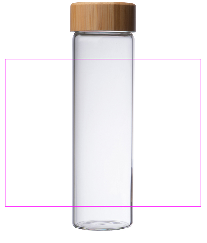 Glass bottle with bamboo lid and 500ml filling capacity. Your logo will be engraved on the lid.