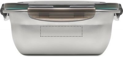 Recycled stainless steel lunch box with recycled PP lid and 4 side clasp closure. Including separator. Capacity: 1500 ml.