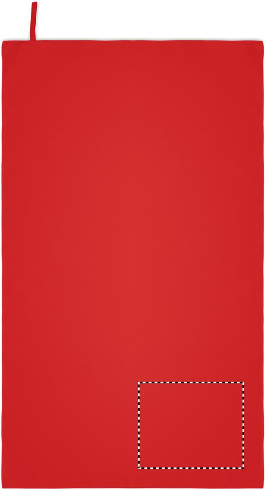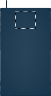 Microfibre towel made of 90% polyester and 10% polyamide with elastic hanger loop. Lightweight and quick drying. Size 70 cm x 120 cm.