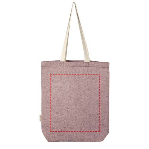 The Pheebs 150 g/m² cotton tote bag is made from eco-friendly, pre-consumer recycled cotton. It features 27 cm durable cotton webbing handles, an open main compartment and a front slash pocket. Resistance up to 10 kg weight. There may be minor variations in the colour of the actual product due to the nature of the production process.