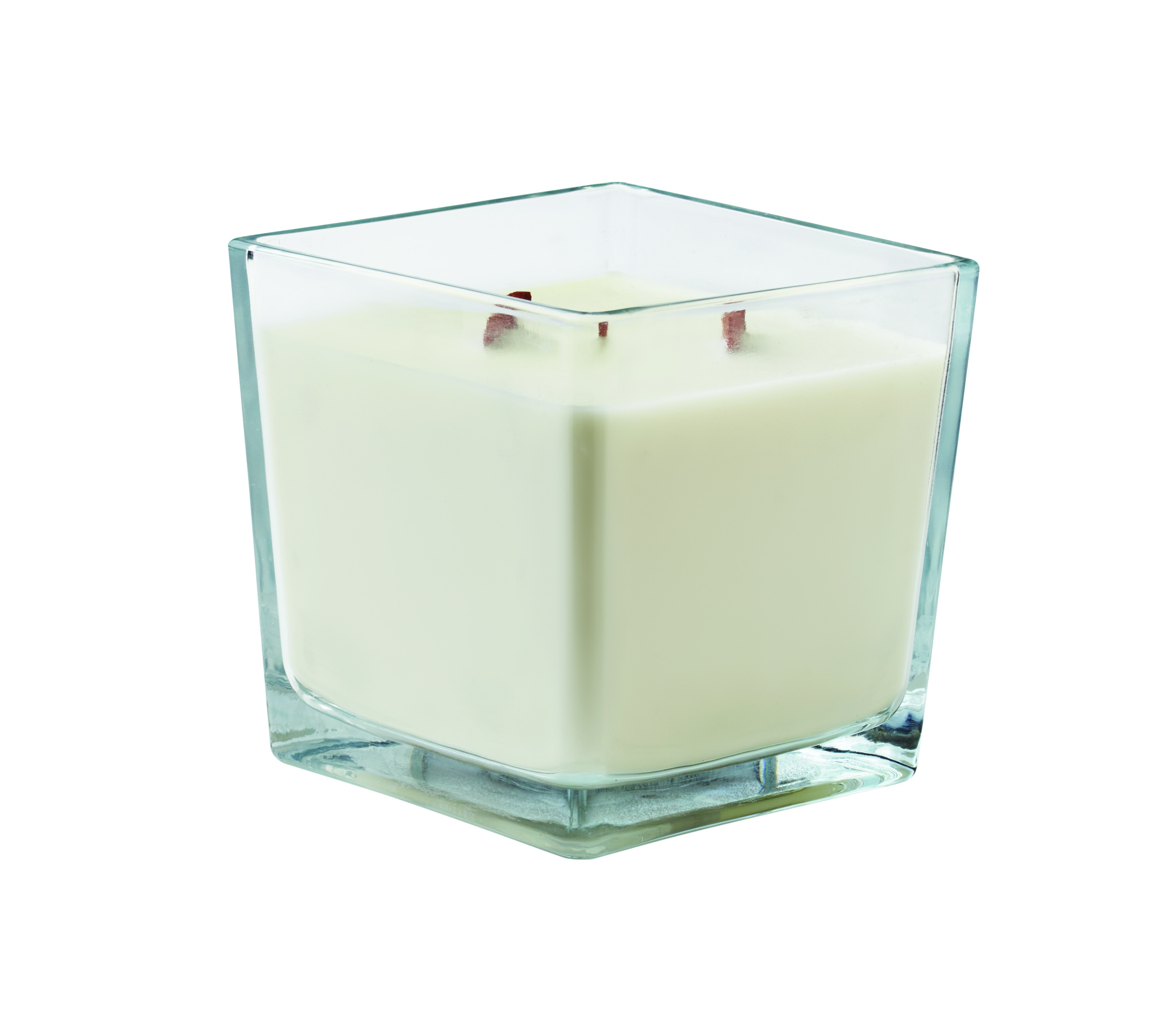 Extra large vanilla fragranced plant based wax candle 1300gr in glass with 2 wooden wicks and beehive design on top. Burning time 70 hours