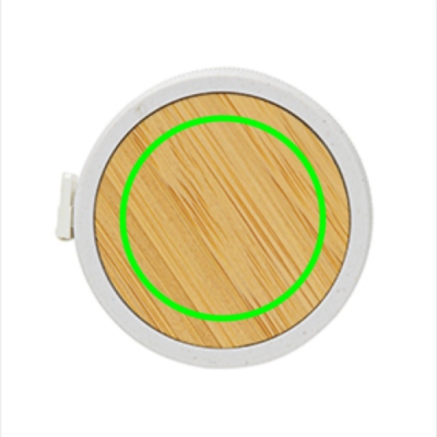 1.5m/60inch recycled plastic tape with return push button, for fitness and fashion. The case is made out of RCS certified recycled ABS plastic, fibreglass and FSC® 100% bamboo. Total recycled content: 64% based on total item weight. RCS certification ensures a completely certified supply chain of the recycled materials. The tape is 8mm wide and retractable by button. Packed in FSC® mix packaging.