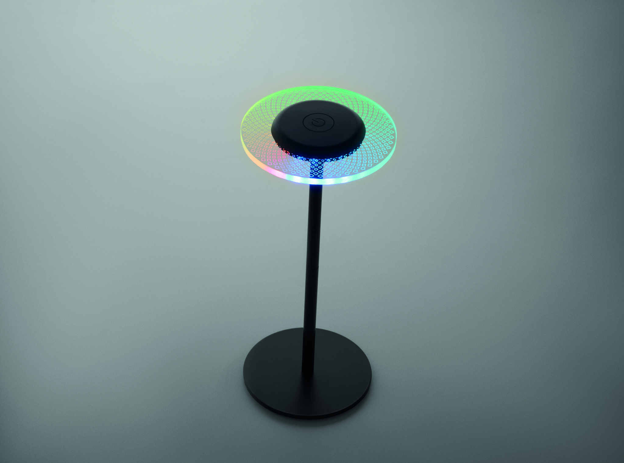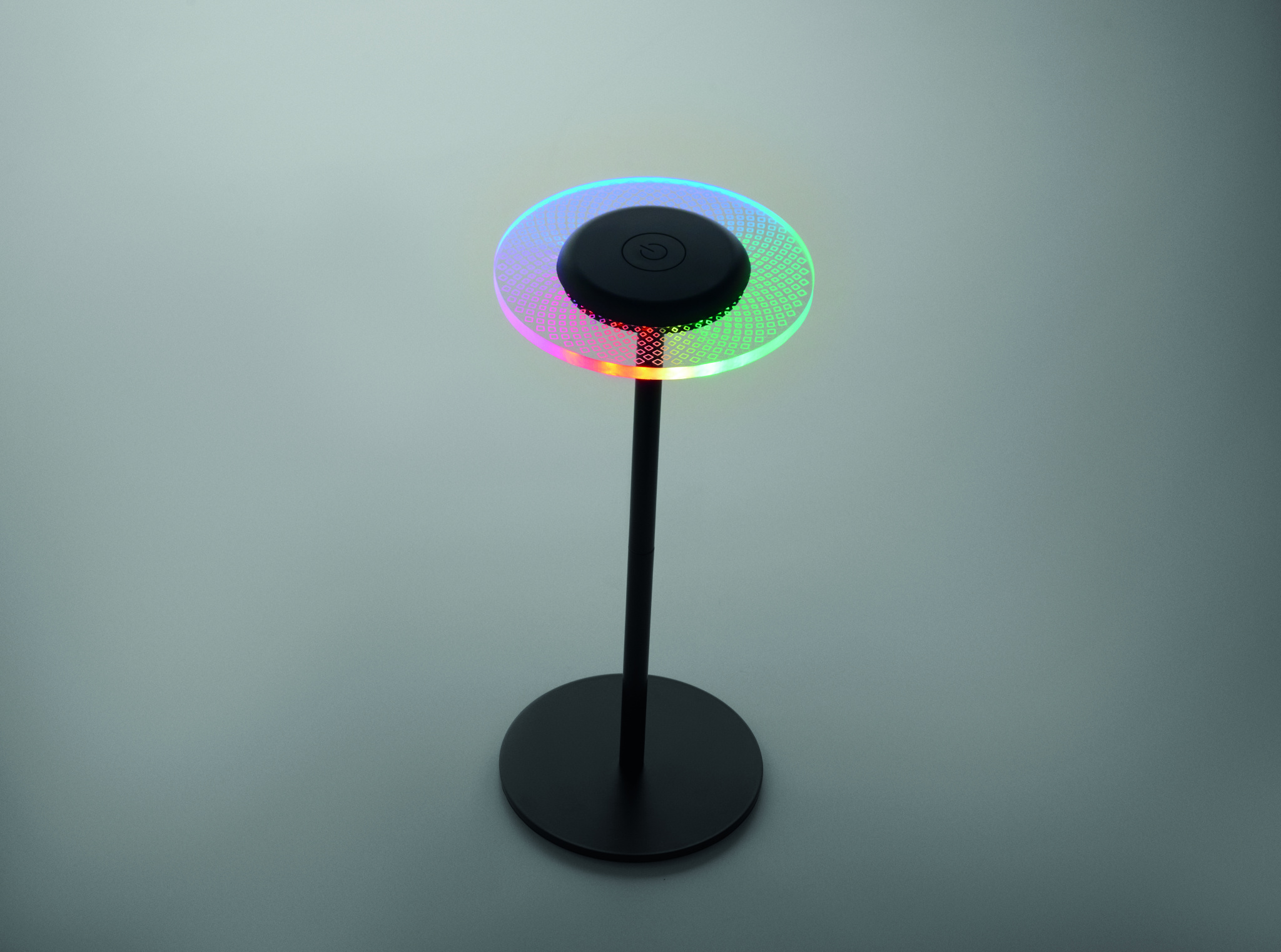 Rechargeable RGB table lamp in iron with 39 LED lights and stepless dimming. With warm or colour changing light options. Built-in 2000mAh battery lasts up to 6 hours.
