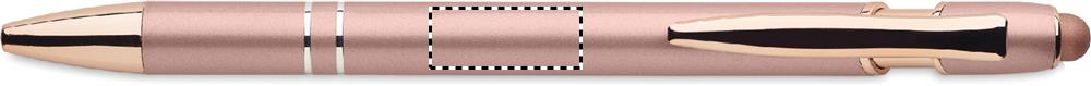 Recycled aluminium stylus push ball pen with rose gold details. Blue ink.