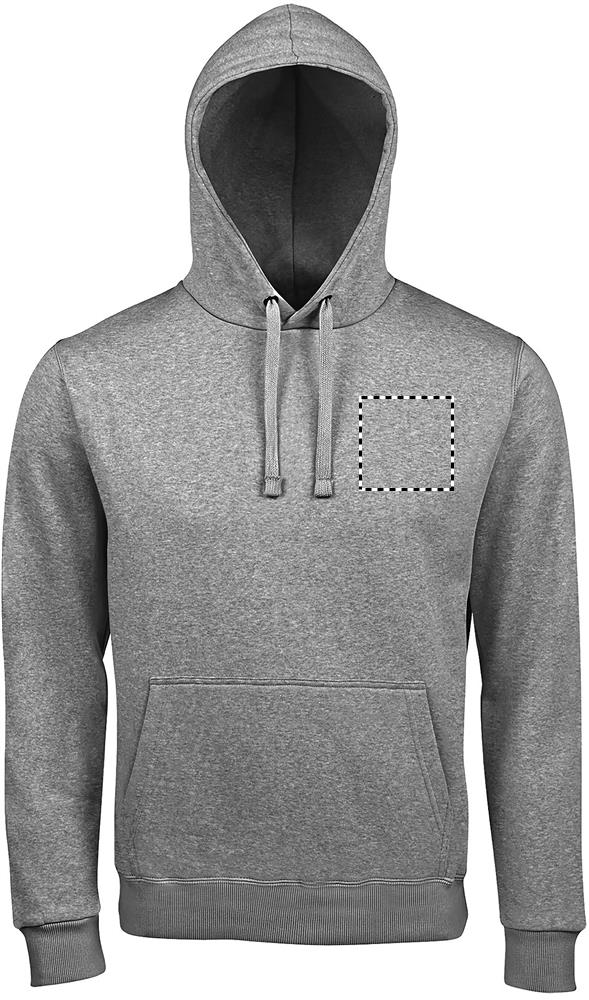 SOL'S SPENCER, HOODED SWEATSHIRT, 80% ringspun cotton - 20% polyester, Brushed lining, Outside: 100% cotton FLEECE 280 LSF (Low Shrinkage Fabric) , Front pouch pocket, Cut and sewn, Lined hood with drawcord, 2x2 ribbed cuffs and hem, Half moon inside collar, Taped neck.About sizes matching, please refer to the size chart in the product documentation section.