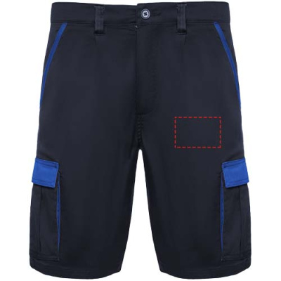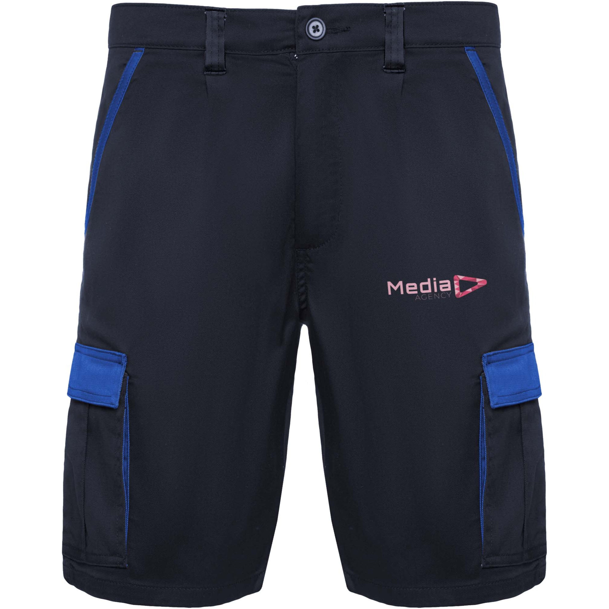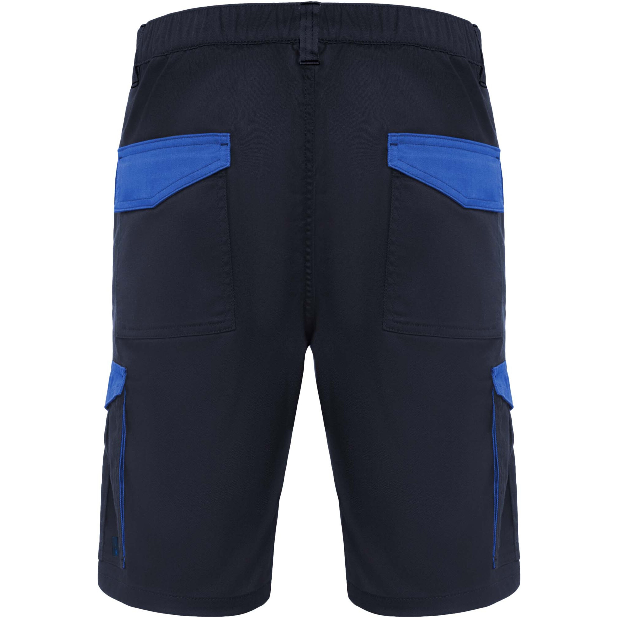 Workwear shorts in a colour combination design. Comfortable and adjustable fabric. Back elastic waistband. Contrasting belt loops, flaps, pleats and trims. Two front pockets. Two back pockets with flap and hook & loop fastening. Two pleated side pockets with flap and hook & loop fastening.