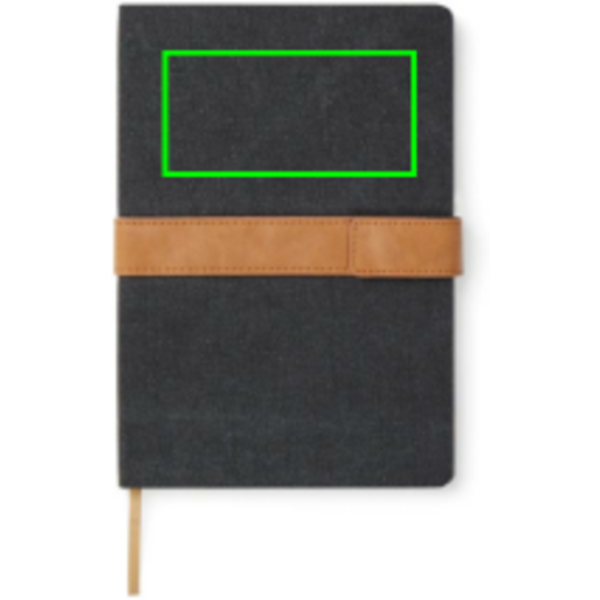 Take notes in style with our A5 notebook, featuring a canvas cover with a convenient PU-band and magnet closure. The notebook contains 80 sheets of 80 gsm RCS recycled paper with lined pages, making it perfect for all your note-taking needs. Made from 65% RCS (Recycled Claim Standard) certified recycled paper, the notebook is a responsible choice. The RCS certification ensures a fully certified supply chain of the recycled materials used, emphasising our commitment to responsible sourcing. The total recycled content of the notebook is based on its total weight.