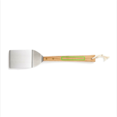 A solid stainless steel spatula, perfect for frying fish or pizza. Ash wood handle.