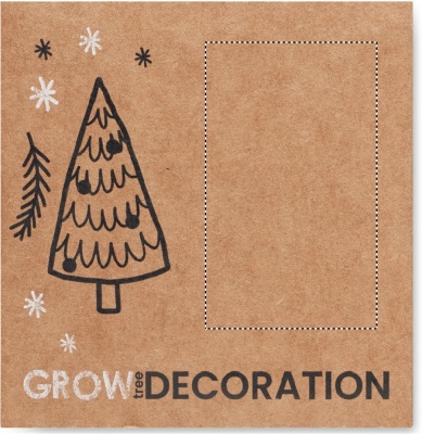 Wooden bauble shaped decoration hanger with jute cord including spruce seeds. Presented in kraft envelope. Made in EU.