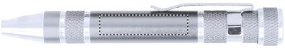 Tööriistakomplekt pikendatava alumiiniumist taskulambiga, 3 LED-tulega ja alumiiniumist mitme tööriistaga pliiatsi kujuga. Kaasas 4 piluga ja 4 Philipsi kruvikeeraja pead. Kaasas 4 patareid LR44. Esitatakse karbis.