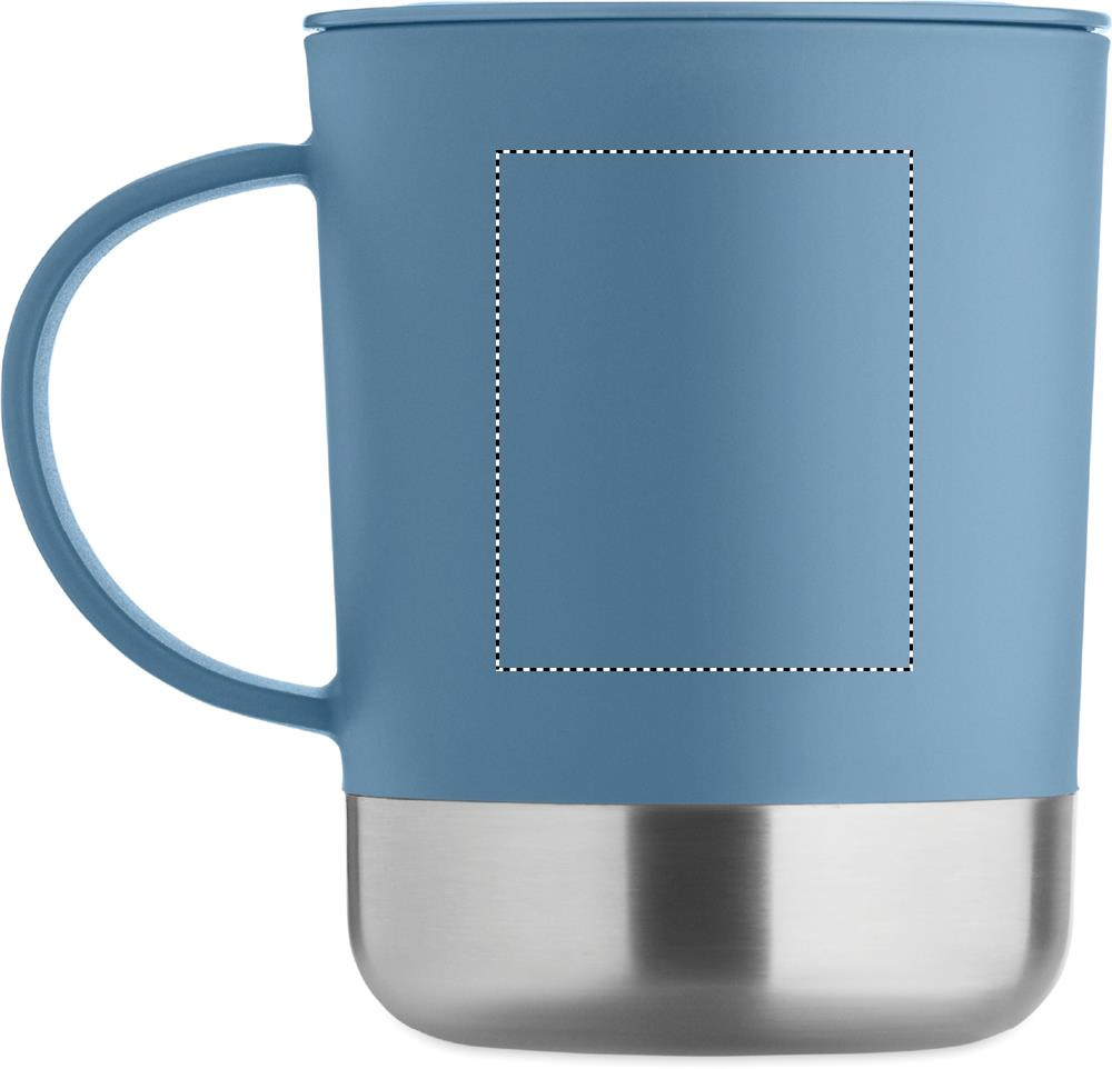 PP kruus taaskasutatud roostevabast terasest põhjaga (90% taaskasutatud roostevabast terasest ja 10% roostevabast terasest) ja PP libistatava kaanega. Mahutavus: 300 ml.