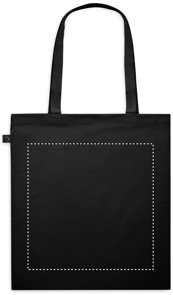 Värvitud Fairtrade puuvillast pikkade sangadega ostukott. 140 gr/m².
