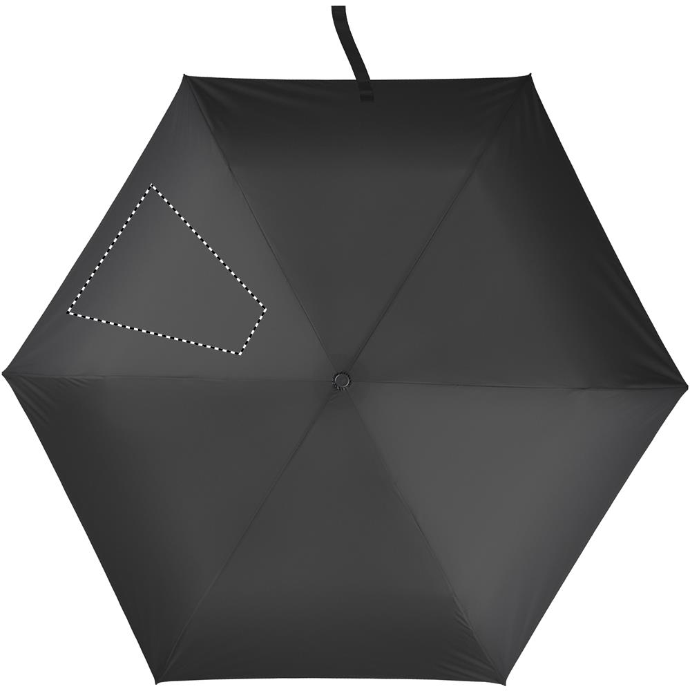 Mini 3-kordne ülikerge (100gr.) 19-tolline käsitsi avatav tuulekindel vihmavari 30D pongee polüestrist musta süsinikkiust varrega. Mustad süsinikkiust ribid ja plastikust otsad. Käsitsi sulgemine. Esitatakse kotis.