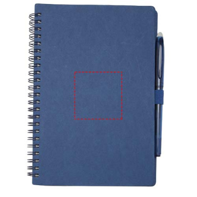 Korduvkasutatav kivipaberist pehmekaaneline märkmik ja pastakakomplekt. Märkmikul on papist kaas, ümarad nurgad ja 32 lehte 120 g/m² joonelist paberit. Kivipaber on 100% puuvaba ja tootmisprotsess kasutab vähem energiat võrreldes taaskasutatud või uue paberimassi paberiga. Tagaküljel on tasku musta puhastuslapi hoidmiseks (kaasas). Kustutav taaskasutatud plastikust pliiats läbipaistva silindri, valge kustutuskummiga peal ja ühevärvilise klipiga. Tindi värv: must. Kirjutamise pikkus: 250 meetrit. Otsa suurus: 0,7 mm.
