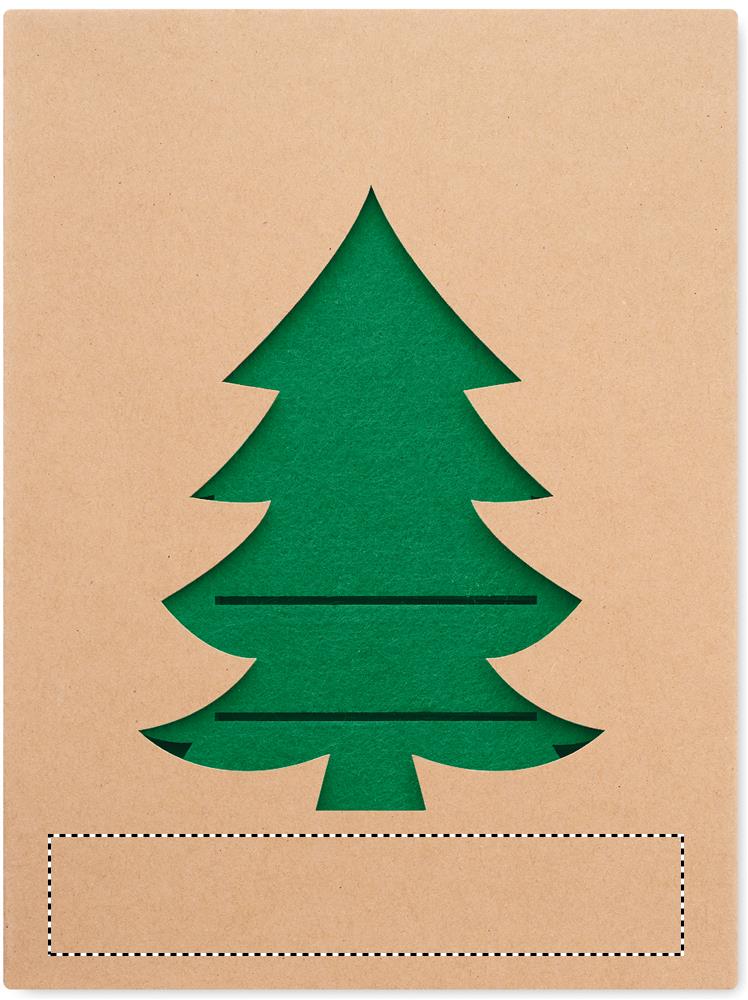 4-st jõulupuukujulises RPET-vildist söögiriistahoidjast koosnev komplekt, pakitud jõukarbis.