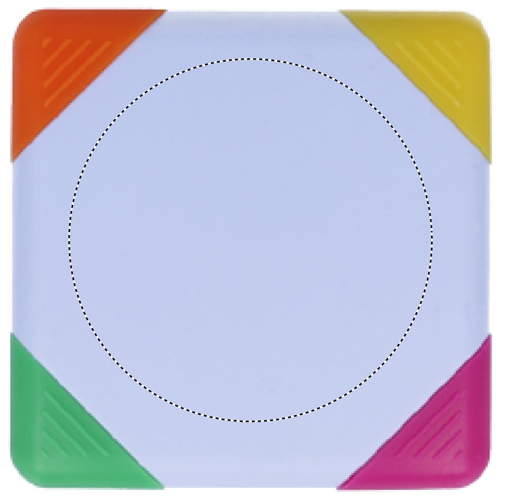 Ruudukujuline marker ABS-korpuses. 4 värvi tint: kollane, fuksia, oranž ja roheline.