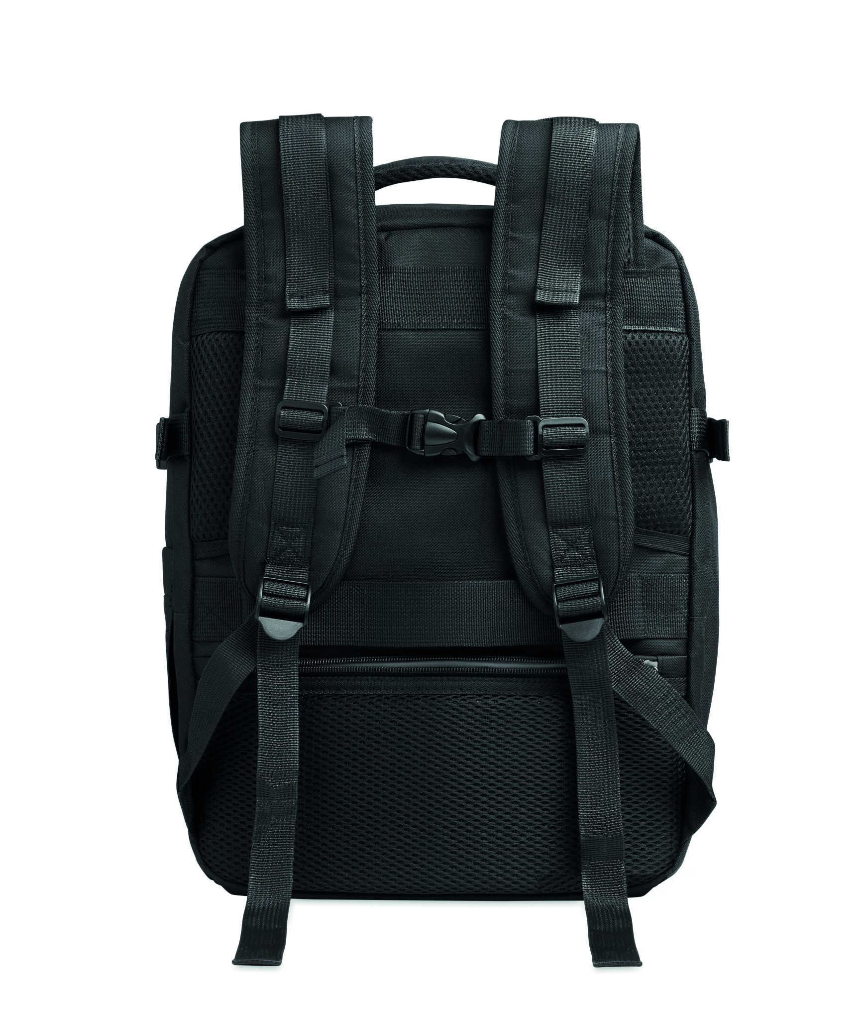Salongimõõdus pikendatav seljakott 600D RPET polüestrist PU-tagusega ja 180° avausega. Sisaldab jalanõude vaheseina, polsterdatud 15-tollist sülearvutitaskut, võrgust rihmasid, pagasirihma ja külgmisi pandlaid.