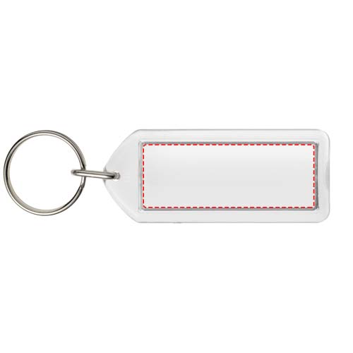Läbipaistev ristkülikukujuline F1 võtmehoidja metallist poolitatud võtmehoidjaga. See võtmehoidja on taasavatav mündiga. Metallist silmusrõngas pakub lamedat profiili, mis sobib ideaalselt postitamiseks. Trükilehe mõõdud: 5,0 cm x 2,0 cm.