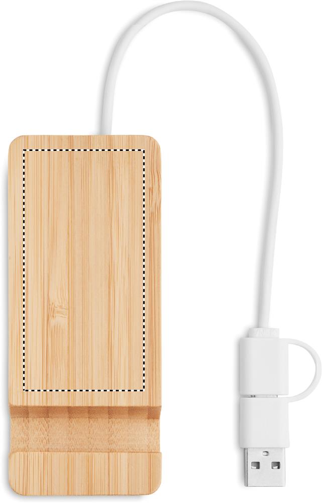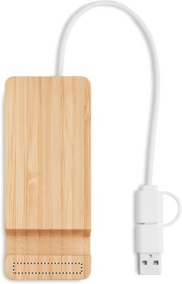 4-porttinen USB-C/A-keskitin bambukotelossa. 2 x Type-C ja 2 x Type-A. Lähtö: 2 x Type-A ja 2 x Type-C. Tulo: 2-in-1 Type-C ja Type-A. Kaapelin pituus: 20 cm.