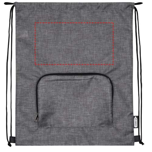 Ash taittuva kierrätetty kiristysnyörillinen kassi, jossa on kiristysnyörillinen päälokero ja vetoketjullinen etutasku, johon kassi voidaan helposti taittaa kuljetusta ja säilytystä varten.
