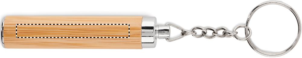 Bambusta valmistettu LED-lamppu, jossa on avainrengas. Mukana kolme LR41-paristoa.