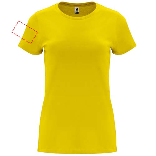 Lyhythihainen ja muotoiltu naisten t-paita. 1x1 resorikankainen pyöreä kaula-aukko. Vahvistettu sauma pääntiessä. Irrotettava tuotemerkki.