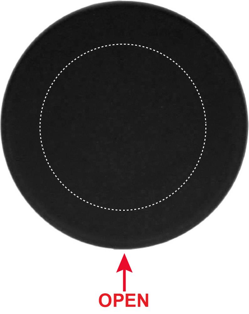 Kumisella pinnalla varustettu kaksipuoleinen käsipeili, suurentavalla ja vakiopeilillä.