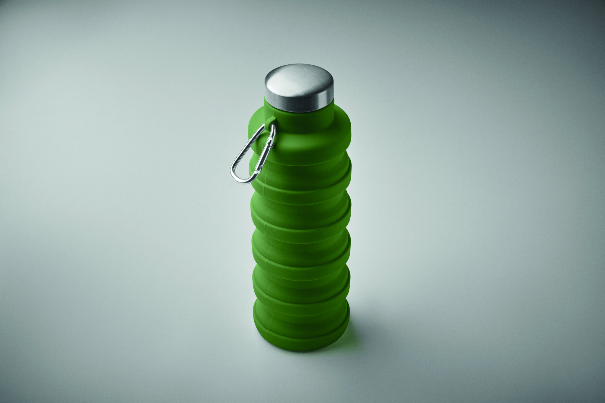 Kokoontaittuva silikonipullo, jossa ruostumattomasta teräksestä valmistettu kansi ja alumiininen karabiini. Karabiini ei ole kiipeilyyn (ei-ammattikäyttöön). Tilavuus: 500 ml.