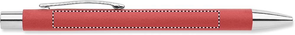 Kierrätyspaperista valmistettu painonappikuulakärkikynä, jossa on metallinen kärki ja klipsi. Sininen muste.