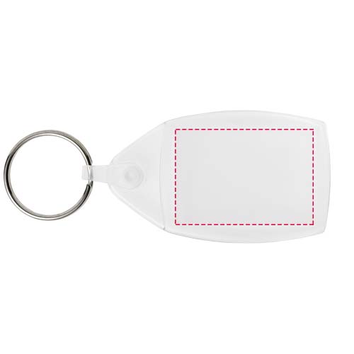 Kirkas P6-avaimenperä, jossa on metallirengas ja dynaaminen muoviklipsi. Muoviklipsi tekee profiilista litteän, mikä on ihanteellista postituksen kannalta. Tulosteinsertin mitat: 3,5 cm x 2,4 cm.