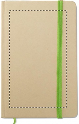A6 muistikirja kierrätetyllä kartonkisella kannella, 192 tyhjää sivua (96 arkkia) Elastisella kuminauhalla ja kirjanmerkillä.