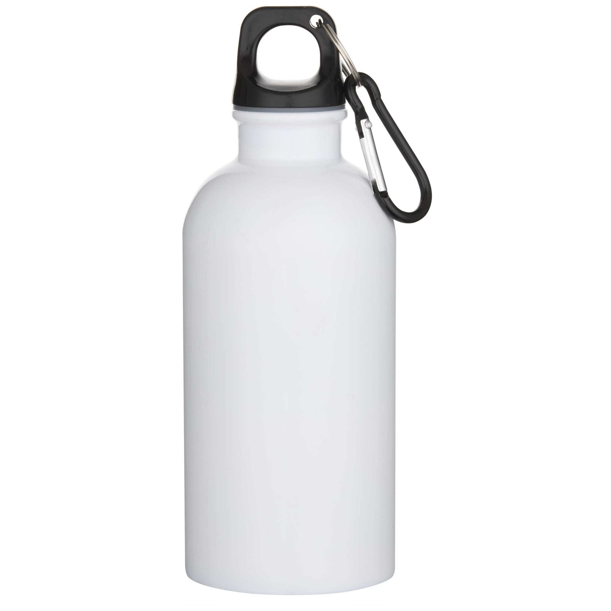 Oregon 400 ml:n RCS-sertifioitu, yksiseinämäinen, ruostumattomasta teräksestä valmistettu sublimaatiopainettu vesipullo karabiinihaalla, Valkoinen
